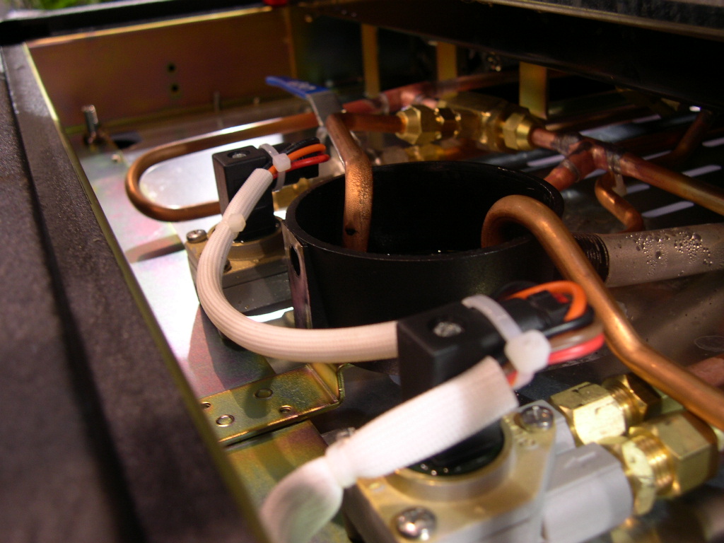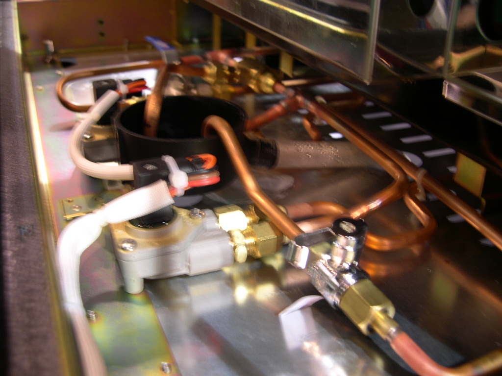 | My first impressions of the machine Obviously a trade show is the not an ideal place to test a machine since you have people coming up to the booth all the time, but I did have a good 2 hours looking at them and poking around. Let me get this off my chest first - the Kedge Klub bears a very striking resemblance to the Astoria Divina by CMA which is one of the finest machines I have ever used. Alright perhaps I am being a bit unfair here. Besides most coffee machines use the same components, have the same layout and pretty much the standard box shape. But the machine was well constructed. The electrical wiring was neat and tidy and the copper pipe work was ok. The main difference between this an a CMA machine is that they use stainless steel boiler which are slightly larger and the elements are beefed up considerably. Let us compare the CMA Astoria, the Kedge and a Linea. |
