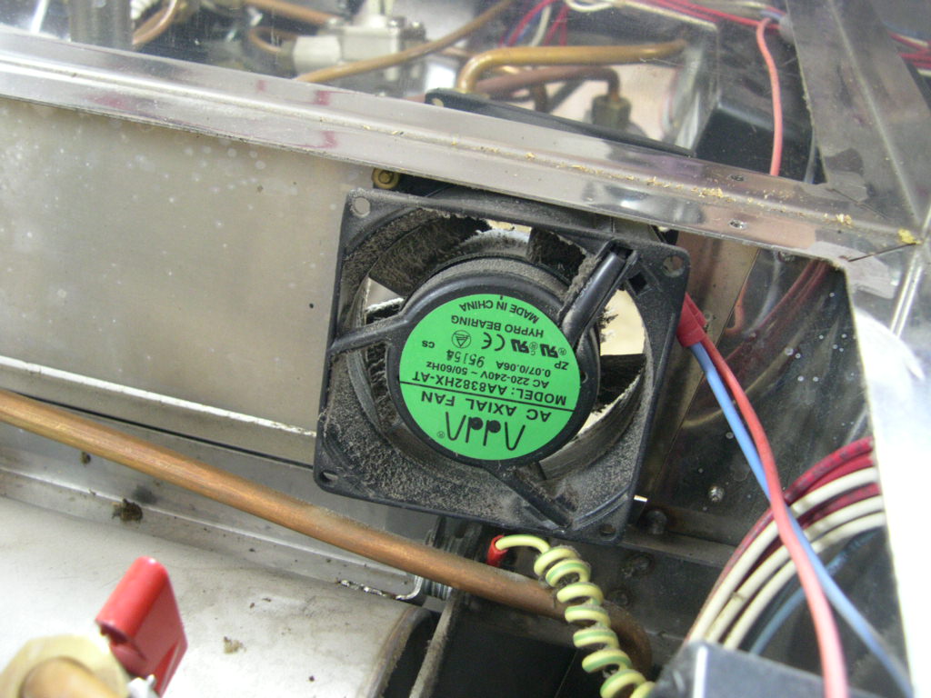Overheating issues Because the control unit is placed so close to the boilers, overheating has been an issue on early machines. Sometime around the mid-1990's a cooling fan was introduced to suck in cooler air from outside the machine and direct it onto the control unit. The other way to do it is to move the box to underneath the machine or install some sort of metallic heat shield. The fans do work and they solve the heat problem, but they do suck in a luck of dust! |