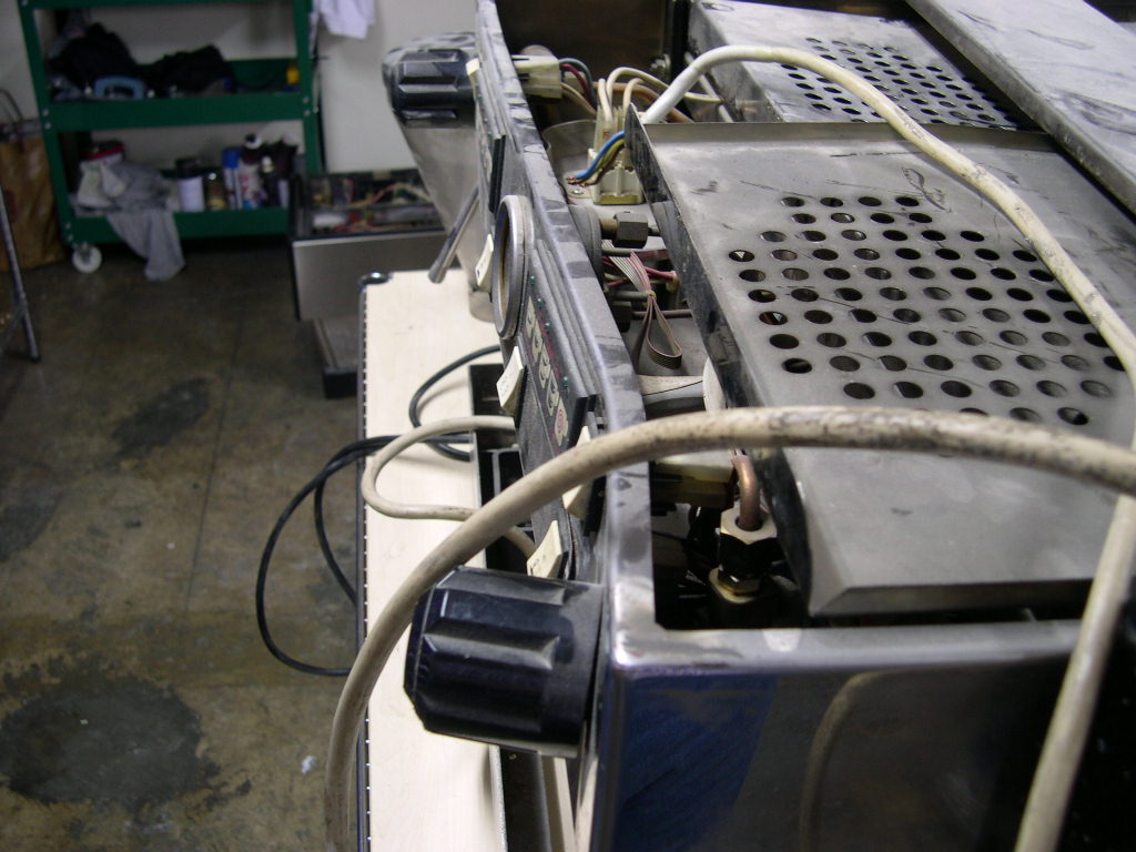 | Finally completed! 05/05/05 Right no more machines for a few weeks, I need a rest. The week before I left for SCAA Seattle I was on track to get all the machines in progress back to their respective owners. However this machine pulled the rug from right under my feet - big time. It was a mad rush to get this machine back together so that I could have 3-4 days testing. Then when I plugged it in, I discovered it had the most annoying electrical fault I have ever come across. I can't tell you how much time I have spent on the wiring problem, if I add up my time sheets it will be well in excess of 60 solid hours - all spent pulling each wire out and then going through wire by wire with the circuit diagram. Believe me when I tell you on times I had thought about throwing the machine out the window, it was that frustrating. Maybe the poor machine just wanted to stay with me and couldn't face more abuse from the restaurant staff! As much as I am relieved to see this machine out my workshop, I do feel a bit sad. I would hate to see it come back in a few years time in the same condition as it arrived. |