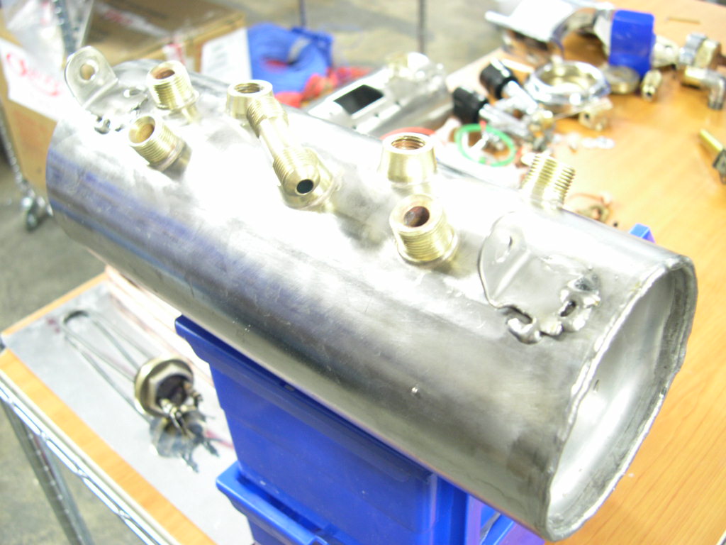 | New parts The new parts that I had made were the main body which was made in satin brushed steel. And a cup warmer tray made in mirror finished steel. The body was given an extra 25mm in height so that it created a bit of a cup rail. I did toy with the idea of a bar type rail (like an FB70) but I'm happy with this. There is also a brand new bakelite group cover to go on but it needs to be adjusted so the switch will fit. |
