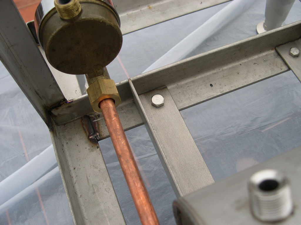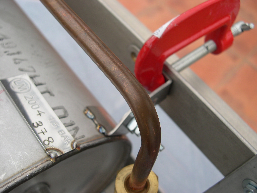 The completed machine Version 1 I`m afraid that for this machine I cannot display any pics of the internal components. Again I don`t claim that it rewrites the rule book on espresso machines but it does have some of my own features, especially my modifications to the standard Marzocco group and my component layout. The first version of the machine was very bare. Of course I had always intended to have a steam valve but I was still deciding on which one I wanted and how it could be done. It was originally going to be a Faema E61 valve, a nice chromed one designed to go on the outside. |
