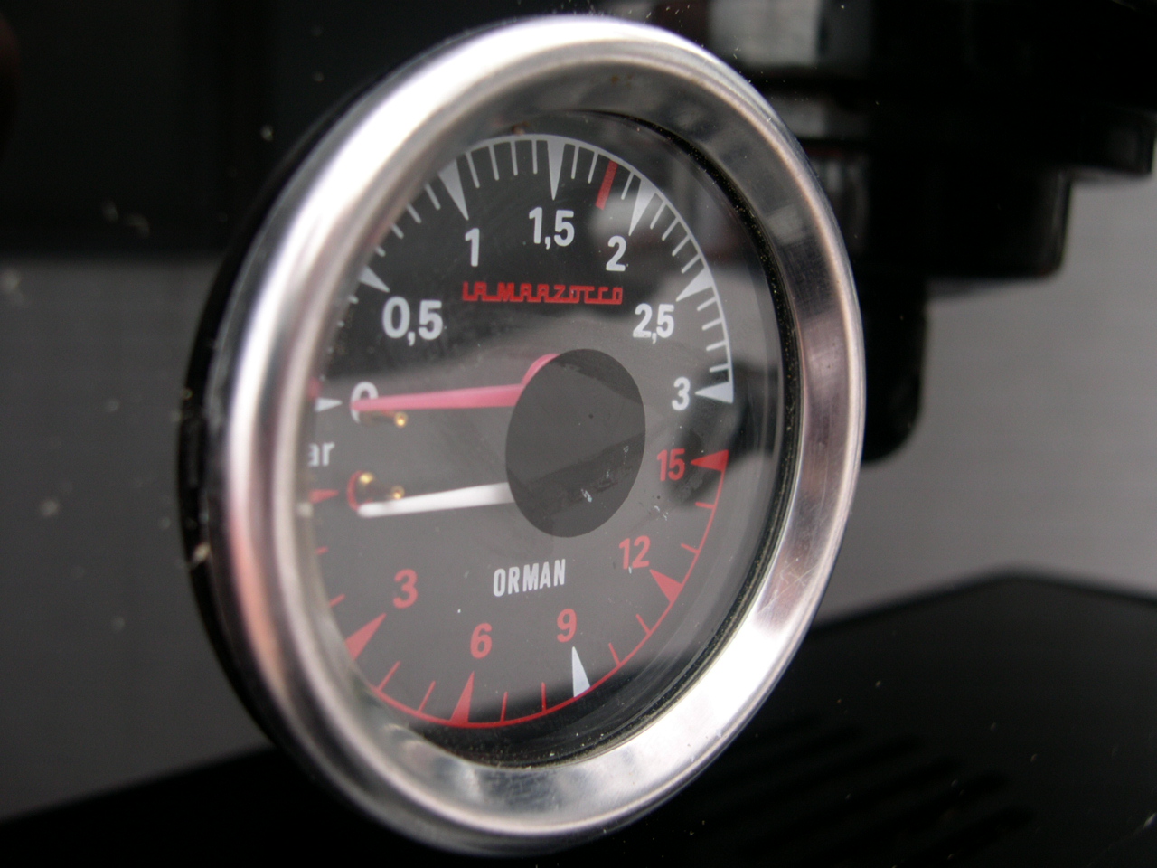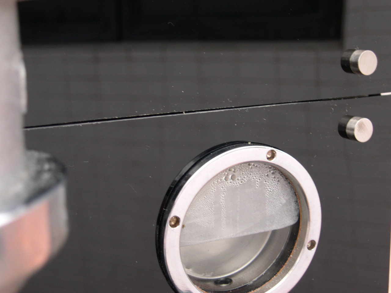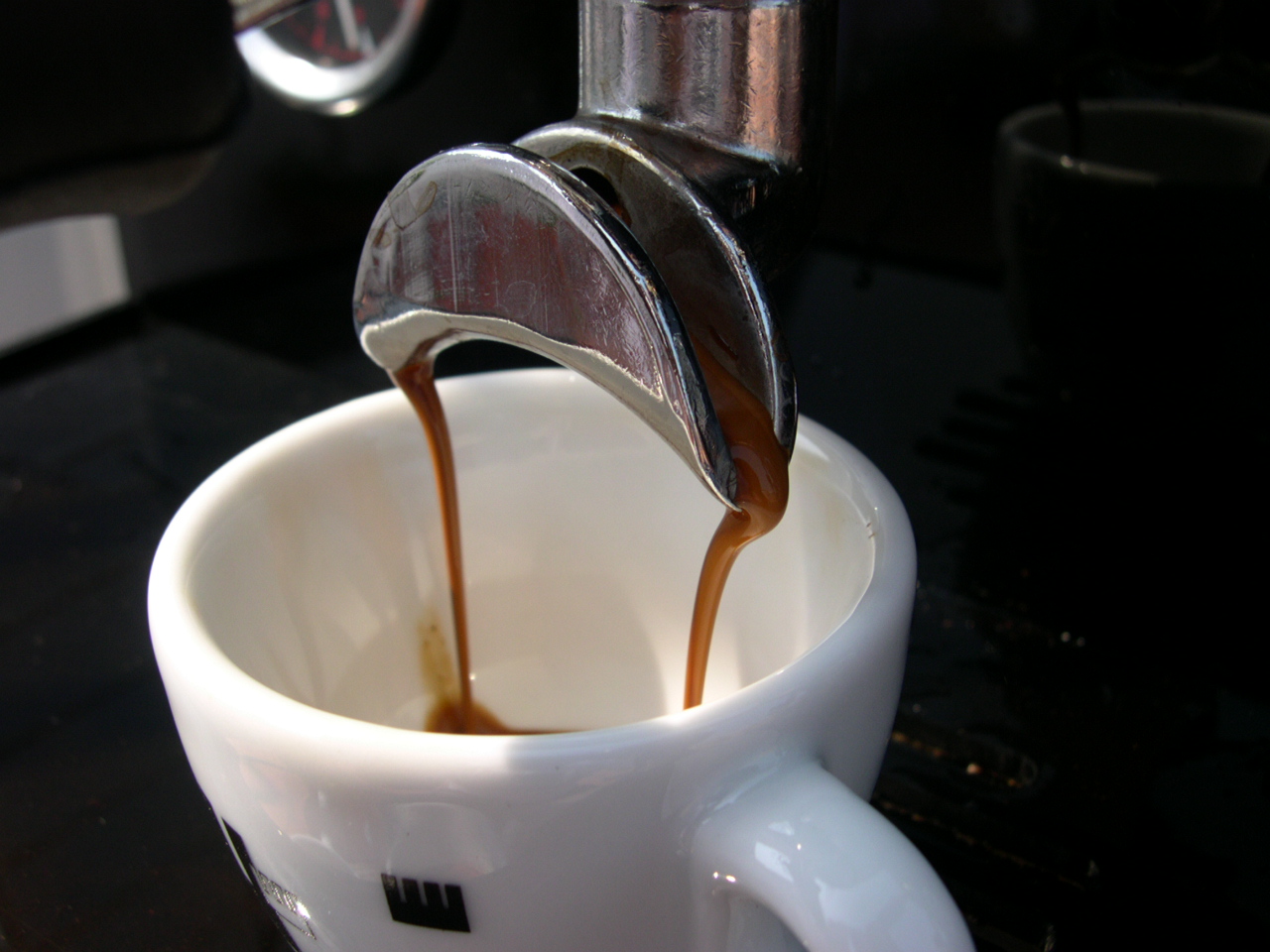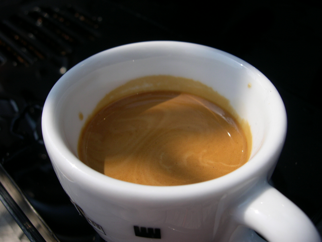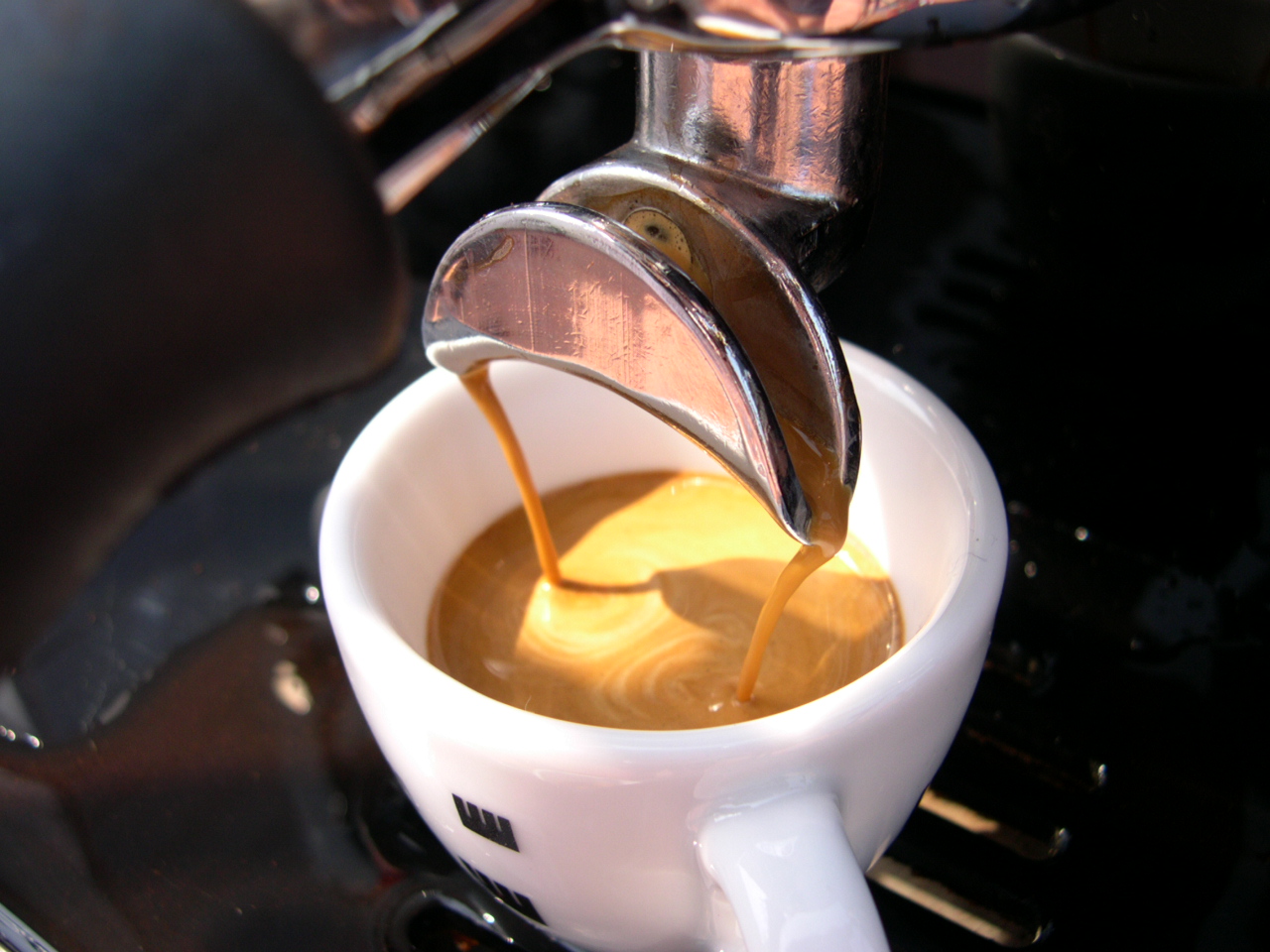 The very first shot Earlier that day I had switched her on for the first time. The wiring was OK in that it didn`t blow anything! and the relief when the autofil clicked on within a couple of seconds of turning on the main switch is something I will never forget. There were also no leaks to adjust for either. To protect the heating elements, there is an isolation on/off switch inside the machine to prevent them being turned on with no water inside the boilers. Once the steam boiler has filled and you have bled the air from the brew boilers you are good to go and switch the elements on. Now I really am not lying but the next pictures are the first two shots from the machine. |